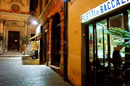 A pochi passi da Campo dei Fiori, tra via dei Giubbonari e la Chiesa di Santa Barbara, ogni romano che si rispetti ha fatto almeno una volta nella sua vita una visita in questo storico locale. Il re indiscusso del Filetto di baccalà vanta una cucina tutta al femminile, intenta a friggere come se ci si trovasse nella cucina delle proprie nonne. Nonostante sia possibile anche sedersi all’interno e provare delle meravigliose puntarelle o uno spettacolare pane burro e alici, si può ordinare il filetto e portarlo via fatto sul momento, avvolto in un foglio di carta ancora fumante. Per chi volesse poi c’è la possibilità di inoltrarsi in fondo al locale e assistere alla preparazione del filetto, quando viene passato nella pastella e poi immerso negli enormi contenitori d’olio bollente. Istituzione.