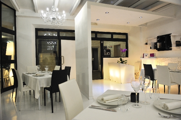 PURO perchè il ristorante è stato realizzato in stile moderno con linee geometriche semplici ma curate ed il colore predominante è il bianco, simbolo per eccellenza della purezza. Puro perchè quello che deve risaltare è la qualità del pesce, re incontrastato del ristorante.